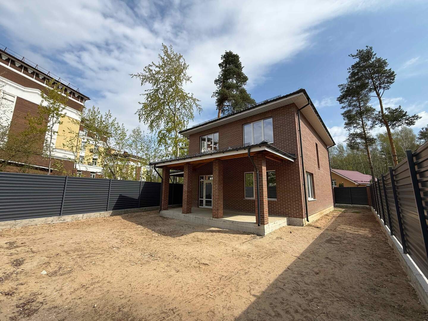Коттедж (дом) 192,9 кв.м. на участке 5 соток для ПМЖ в гор. Балашиха Носовихинское шоссе 8 км от МКАД по ул. Черняховского д. 56Г. Коттедж двухэтажный 2024 года постройки. Фундамент монолитная армированная плита 150 мм на ленточном фундаменте шириной 50 см на 28 сваях. Стены из газосиликатного блока толщиной 300 мм, снаружи отделка облицовочным кирпичом, промежуточная воздушная прослойка. Межэтажные перекрытия и лестничный марш железобетонные. Окна пластиковые двухкамерные стеклопакеты с ламинацией. Мультистекло. Утепление потолка 300 мм. Крыша из металлочерепицы. На 1 этаже просторная кухня-гостиная 32,6 кв.м, гостевая-кабинет 18,3 кв.м., топочная, ванная, прихожая, холл, крыльцо, терраса 22,5 кв.м. На 2 этаже три жилые комнаты 18,2 кв.м. с собственной ванной комнатой и гардеробной комнатой, 16,4 и 15,6 кв.м., ванная комната, холл. Коммуникации: магистральный газ заведен в дом, электричество 15 кВт, установлен счетчик на столбе, скважина 22 метра. Участок без зеленых насаждений. Огорожен забором на ленточном фундаменте с элементами из кирпича. Откатные ворота с электромотором и автоматикой. Круглогодичный проезд по асфальтированной дороге. Ж/д станция Салтыковская в 20 минутах пешком, остановка автобусов в 18 минутах пешком от дома. Ближайший сетевой магазин Пятерочка в 700 метрах от дома. Школа, детские сады, поликлиника в 20 минутах пешком. Ипотека подходит.