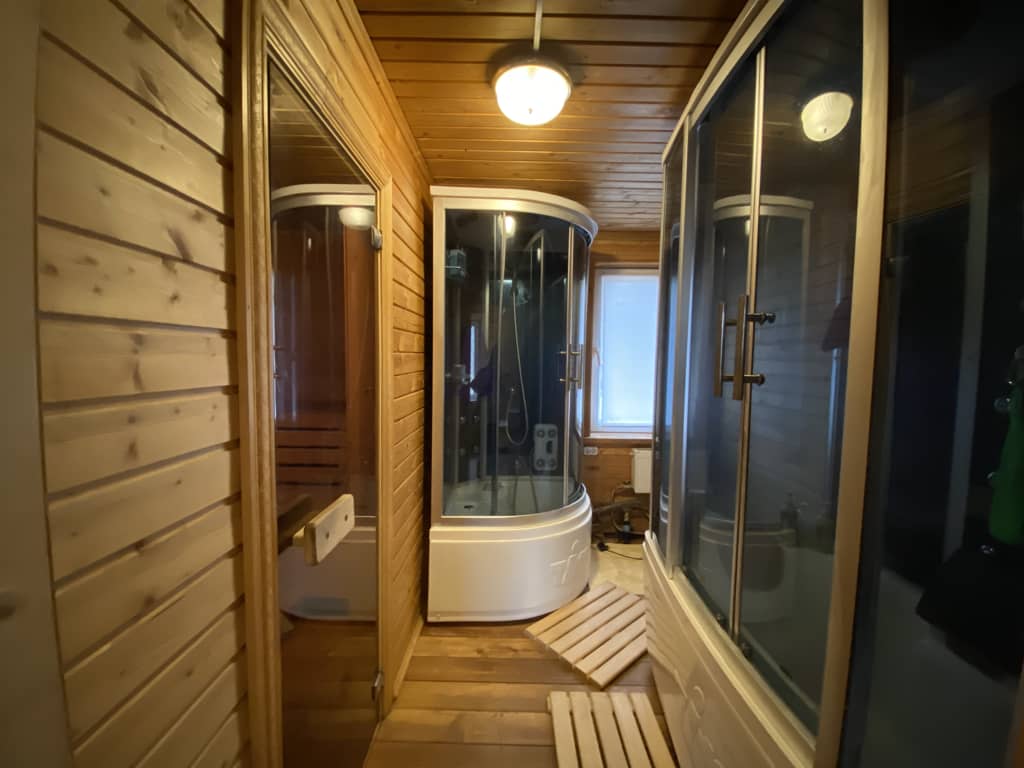 На территории участка: баня с бассейном с панорамными окнами, беседка, гараж, гостевая парковка на 2 м/м.